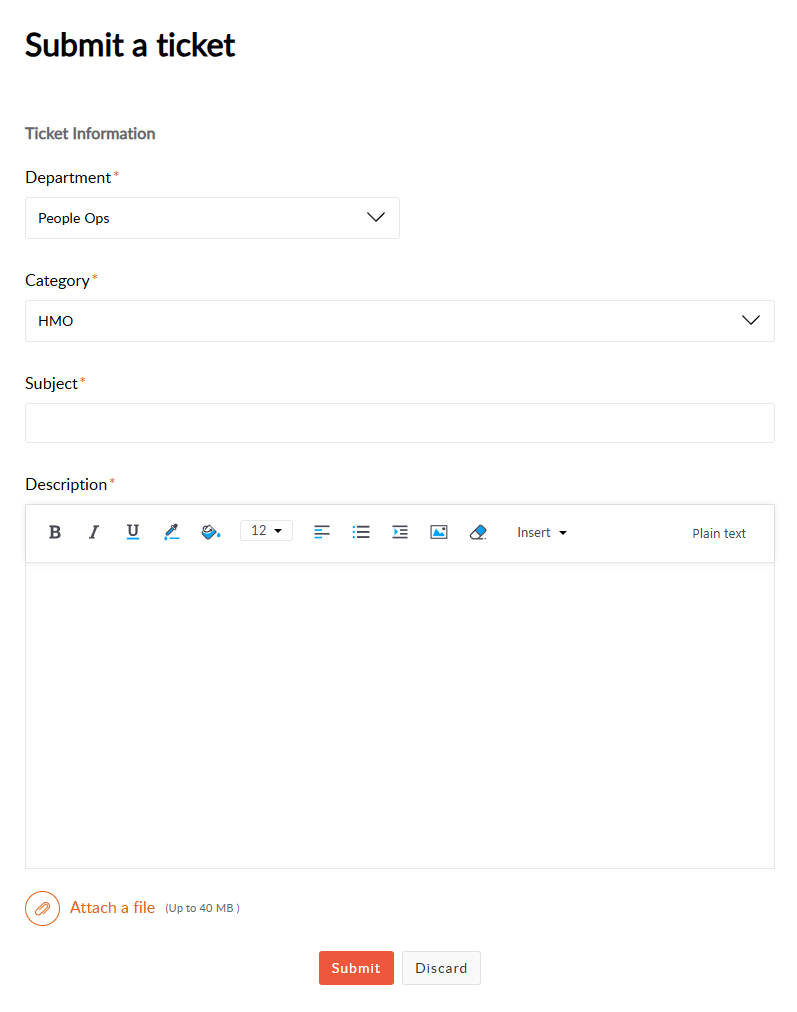If you have trouble submitting or viewing tickets, contact ask@hugotech.co or visit the FAQ section in the Zoho Desk portal